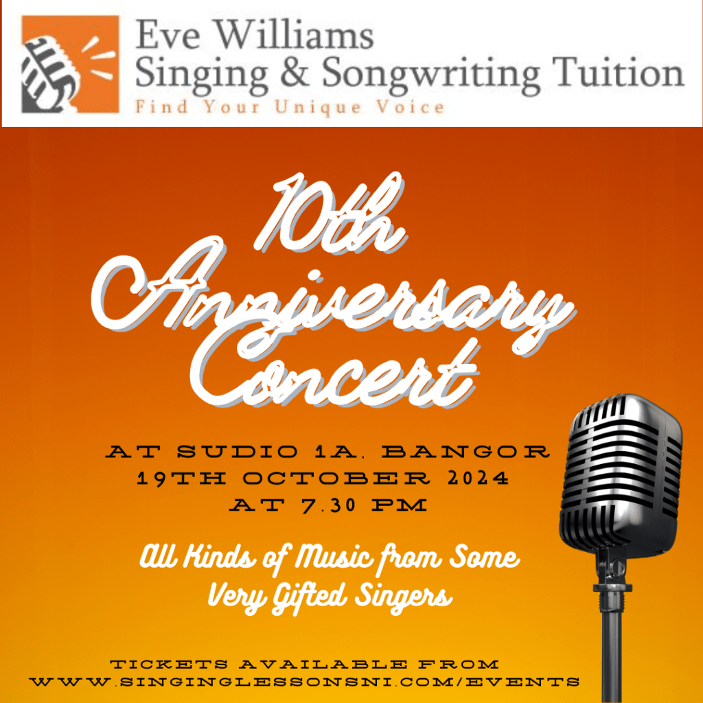 I am very excited to be presenting my talented students at my 10th Anniversary Celebrations at Studio 1A, Bangor, a fine working theatre. There will be every sort of music and an open bar. The standard is really high so I hope you will be able to join us. Tickets cost £8.50 available here.